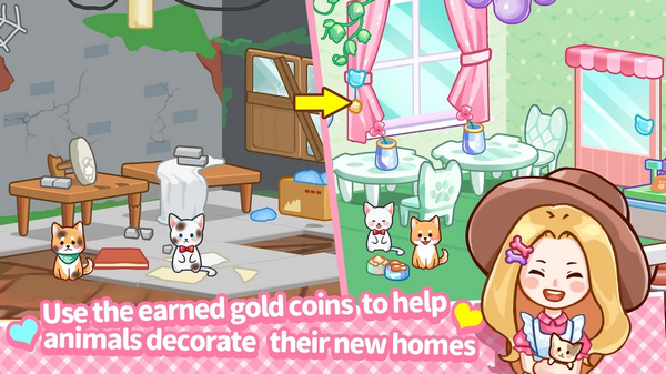 1、丰富的游戏内容,带来从未有过的治愈经营体验,不仅能够与可爱的动物互动玩耍,还能收养可怜的小动物完成特殊任务。