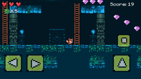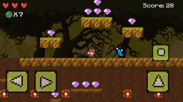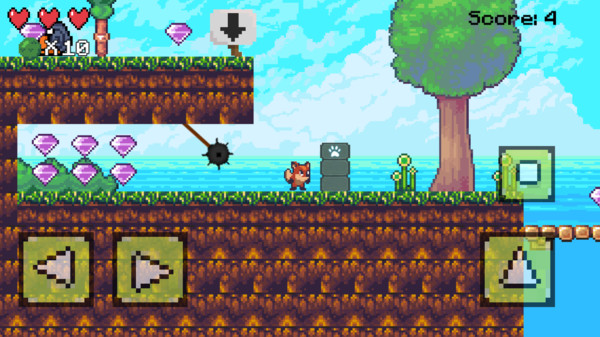 像素狐狸游戏是有一款十分玩法和画面都比较复古的怀旧向像素风格冒险类手游,这里有很多关卡供玩家探险。游戏的操作很简单,只有四个按键,分别是左右移动、跳跃和攻击键,玩起来更加轻松。而且关卡的设计十分出色,除了需要击败或者躲避沿途的动物外,这里还有很多陷阱障碍来考验玩家的策略和操作。此外在途中还有很多钻石,拾取后可以获得更多分数。