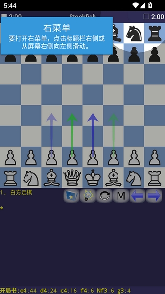 打开应用后,点击左上角的菜单按钮,选择新建对局。你可以选择与引擎对弈,或加载已保存的棋局。