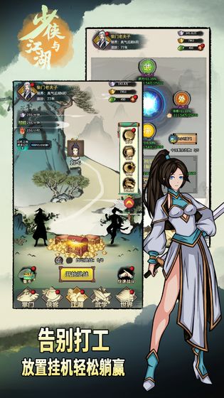 少侠与江湖是一款容易挂肝不伤的冒险的冒险游戏。加入一个全新的世界,打开你自己的多样的体验,进入到特别的副本中获得稀有的宝藏,让你的角色有更多的战斗技能反馈,让玩家的每次战斗都能有超爽的感觉。眼花缭乱的神装,古代神兵利器,强大的宠物神兽,酷炫夺目。