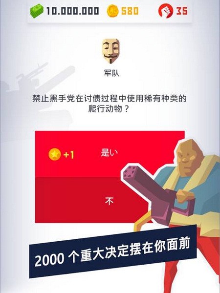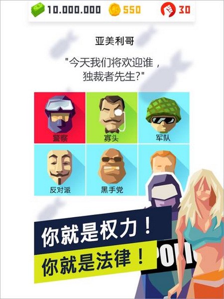 独裁者2破解版是一款非常好玩的策略卡牌类游戏,游戏已经上线就获得了许多玩家的喜爱,而且受到包括美国,加拿大,俄罗斯,澳大利亚等多数国家的玩家们的追捧。游戏中玩家们将成为一个刚刚起步的共和国国家的统治者,为了扩张自己的国家,大家要带领自己的军队向别的国家发起挑战,除了要解决外忧,还有内患,无数人盯着你的宝座,大家必须要做出明智且及时的决定,解锁掉所有的敌人,带领自己的人民拥有更美好的未来。游戏中为大家带来无限金币,喜欢的快下载吧!