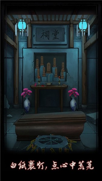 10、拾取祭桌上的【纸花】,将【纸花】插入花瓶,查看花瓶得到线索。