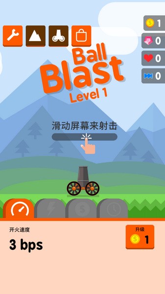 1、在游戏中消灭小球会获得金币,金币达到一定的数量就可以升级开火的速度,这里以每秒几发子弹来计算的,级别越高,开火的速度就越快,在游戏中更是容易快速消灭小球。