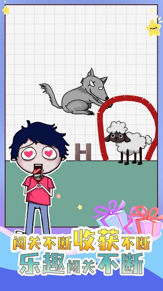 2、以使用手中的画笔随意任性创作,解锁更多生动好玩的画了个毛线游戏关卡场景。