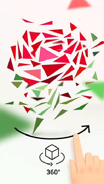1、通过不断旋转3D拼图碎片,合并出一幅漂亮的图案。