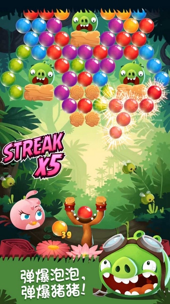 经典角色与泡泡龙玩法的结合:游戏基于愤怒的小鸟系列,保留了经典角色设定,并融入了泡泡龙的闯关玩法,为玩家带来全新的游戏体验。