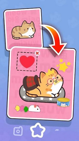 清新治愈的视觉设计:采用低饱和度色彩与圆润线条,打造萌化的小猫形象与童话风场景(如森林、城市、海滩),配合欢快的背景音乐,营造轻松愉悦的游戏氛围。
