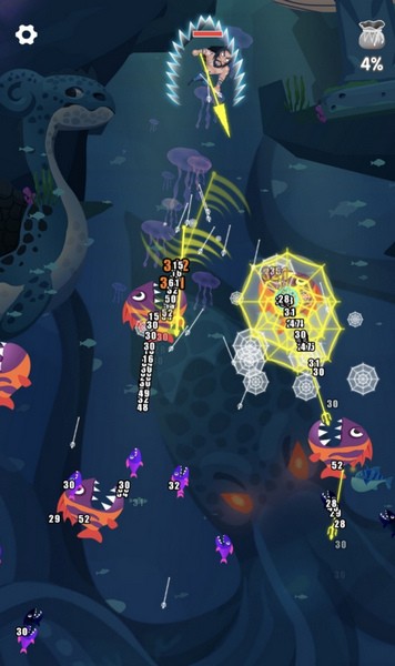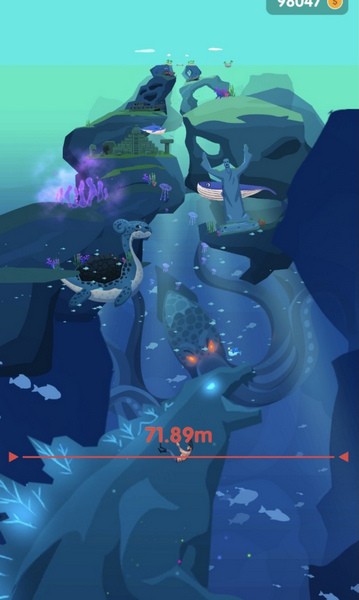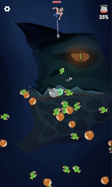1、点击屏幕,将硬汉派往深海,拖动你的手指控制硬汉猎杀你所看到的一切;