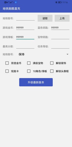 地铁跑酷直充器正版是一款专门为所有喜欢地铁跑酷这一游戏的玩家们而打造的直充辅助工具,使用起来也非常的方便简单,只需要几步就可以轻松解锁无限金币,尽情购买所需要的各种道具和物品。地铁跑酷直充器清爽简洁的界面设计同样能够带给大家更棒的使用体验,包括滑板、钥匙以及人物等级、分数等一系列的内容都可以让玩家们去自由调整与修改。