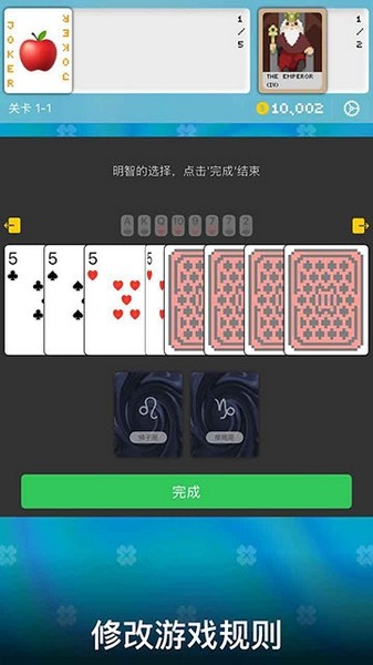 4、肉鸽元素在于有四种类型卡牌分别是塔罗牌,星球牌,和小丑牌,每一张都有不同效果。