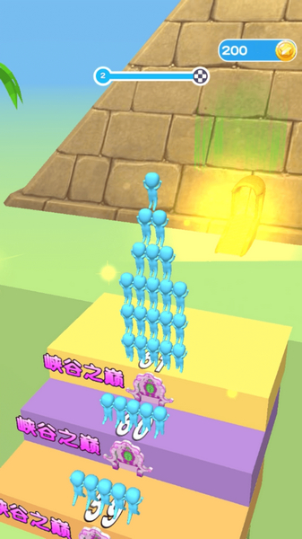 3.当你集中了大量的人群时,在通过终点后,人群就会搭起高高的人墙,帮助你获得更高的倍数提升。