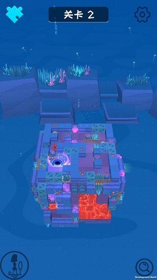 1、游戏的创意来源于魔方,魔方的上下左右皆可转动,游戏里玩家需要帮助少女寻找地图中的拼图碎片,到达终点,去往下一关。