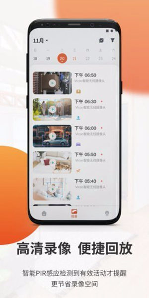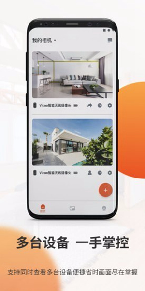 全橙看家,配合智能摄像头产品共同使用,您可以随时了解屋内、庭院、阳台等场所的实时视频,同时也可以快速浏览到摄像头自动监视过程中的录像,利用App,轻松实现多个产品同时监控或家人共同使用。