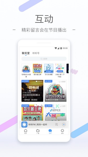 在最新版中,听听FM还引入了社交功能,包括聊天室互动,使用户能够在聆听节目的同时进行互动和交流,与主持人直接互动。用户还可以通过软件分享自己喜欢的节目给好友和亲人,共享快乐。