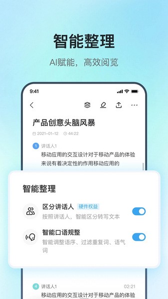 讯飞极智是一款专为科大讯飞录音笔设计的手机软件,功能强大又方便。它能快速将会议录音上传到云端,还能通过蓝牙连接录音笔,让用户随时随地录音、编辑和转文本,特别适合需要高效处理音频内容的人。
