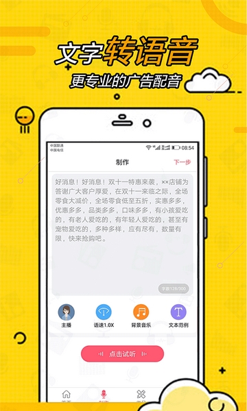 1.免费转语音:所有配音内容一键免费导出至U盘,循环播放无障碍。