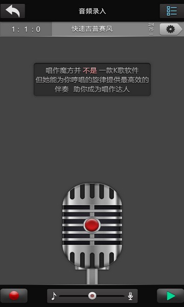 在录音前需先确定好节拍和速度,并且带上耳机录音会获得更佳的录音效果。