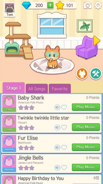 从简单的音乐游戏到闪电般的挑战性音乐游戏,Cat Piano的音乐游戏对整个家庭都很有趣!