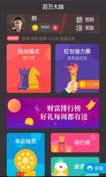 “百万大脑”是一款非常有趣的休闲问答类App,主要考验玩家的记忆力和反应力,答对题目还有机会赢现金大奖,听起来挺有吸引力的吧?游戏规则很简单,就是在规定时间内完成一定数量的题目。我觉得这个设计挺有意思的,既锻炼脑力又有可能赚到钱,简直是一举两得!