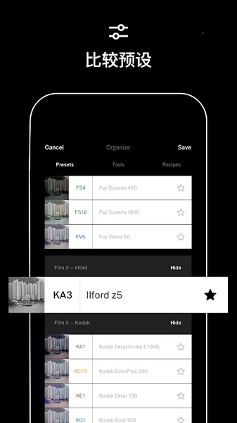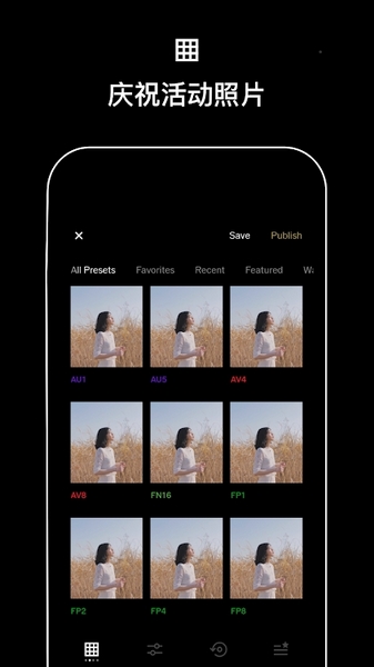 在应用内商店中浏览并购买各式各样的炫酷预设包。从生动的色彩到渐变的黑白,市面上最好的移动预设尽在这里。