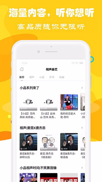 5、海量内容任君筛选,高品质无限收听,免费收听不花钱;