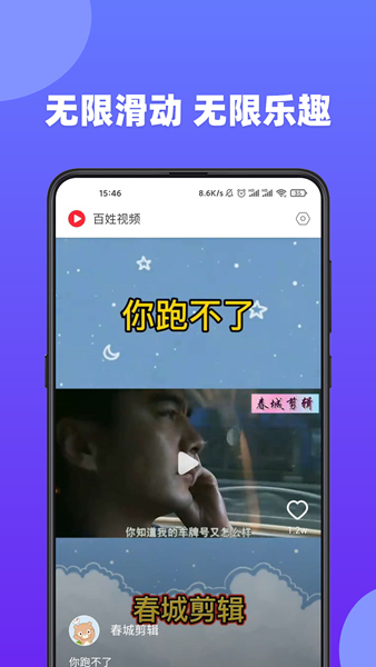 百姓短视频是一款主打手机在线观影的软件,如果想要在休闲时分看些视频消磨时光的话,那么这款软件便是一个不错的选择,其汇集了海量优质短视频任你收看,且种类相当丰富,覆盖了实事,搞笑、情感、趣闻等应有尽有,满足用户的使用需求!同时软件还会根据用户的浏览习惯来智能推送相应的短视频内容,更懂你的短视频应用!