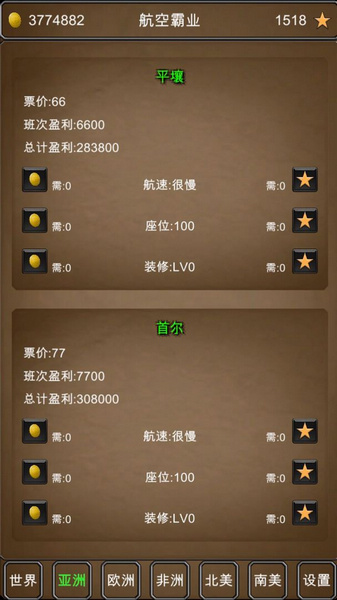 航空霸业是一款非常不错的经营游戏,玩家将在这里不断经营并壮大一家航空公司。游戏尽管玩法简单,但却有着丰富的策略内容,玩家能够在这里经历包括管理航线、投资新设备以及维护机场设施等在内的一系列真实的经营环节。玩家还可以在这里不断扩大机场的规模和开辟新的航线,还能对客机进行更新换代,从而获得更快的航速和更多的乘客。