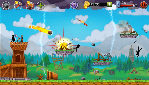 2、帮助火柴人从敌人的攻城武器捍卫自己的城堡;