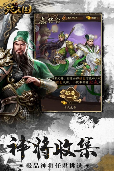 3、在扮傻耍酷的同时一统三国!点将玩法,让你超越孔明,做智慧战略军师救乱世;双技能战斗,让你突破极限武艺超群;八卦石阵,英雄试炼、快速敛财的最佳之地,更多新鲜玩法敬请体验。