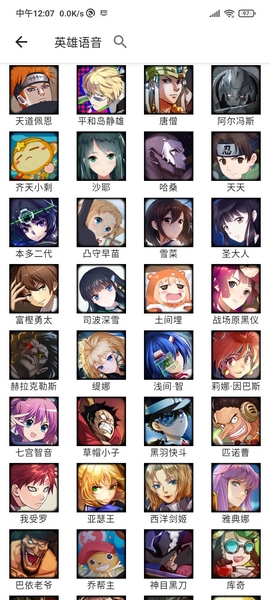 3、点击英雄后会进入语音列表界面,点击下载按钮即可获取对应的语音文件