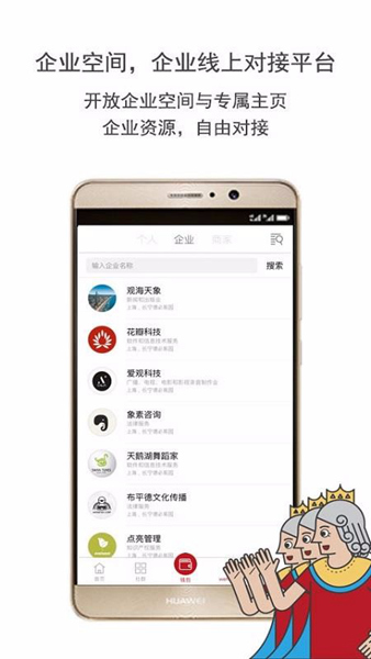 1、进入企业空间界面,能够在这里查询企业名单,方便进行企业社交,拓展人脉;