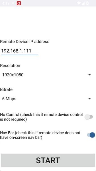 3、打开 scrcpy安卓版应用程序并输入要镜像的设备的 ip 地址。