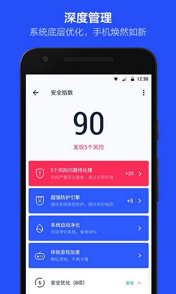 授权管理app也可以叫做kingroot,它是一款十分专业的root权限管理器,大家买来新手机的时候里面一定会有许多系统自带的软件,这些软件不仅不好用,而且还不能卸载,非常占用手机内存,现在大家就可以利用该软件获取root权限来卸载不必要的系统软件,同时软件还拥有Root核心防御引擎,如果有任何病毒入侵系统就会给大家带来危险预警提醒,还能拦截软件相互唤醒,让你的手机更加的流畅。