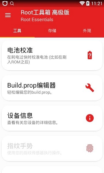 1、首先打开Root工具箱,在工具模块,我们可以使用电池校准、刷机、高级重启等功能;