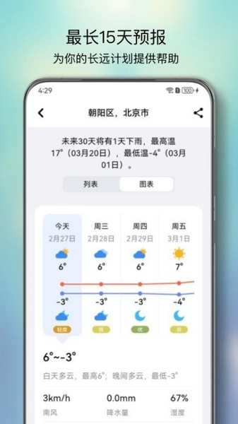 对未来天气的掌握可以为用户的日常生活提供便捷帮助使用。