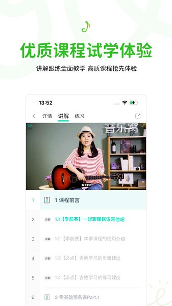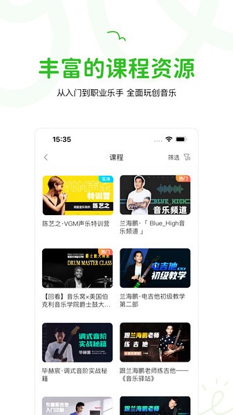 软件还有教师认证功能,普通用户也可以成为老师,分享自己的音乐经验。对于想学乐器的人来说,这里绝对是一个宝藏平台,资源丰富又实用,而且操作简单方便,适合各种阶段的学习者。