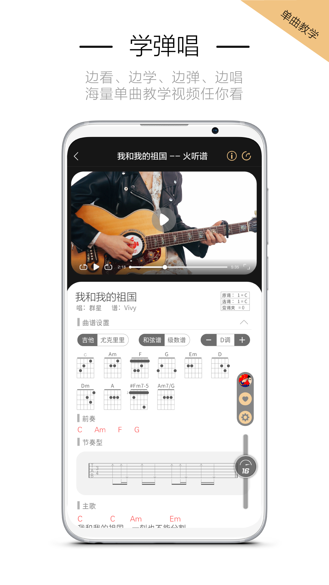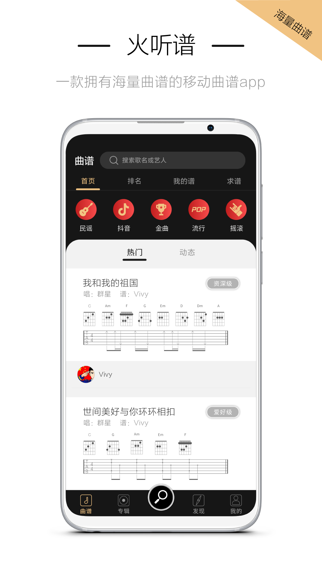 海量曲谱资源,吉他谱、尤克里里谱均可自由切换使用