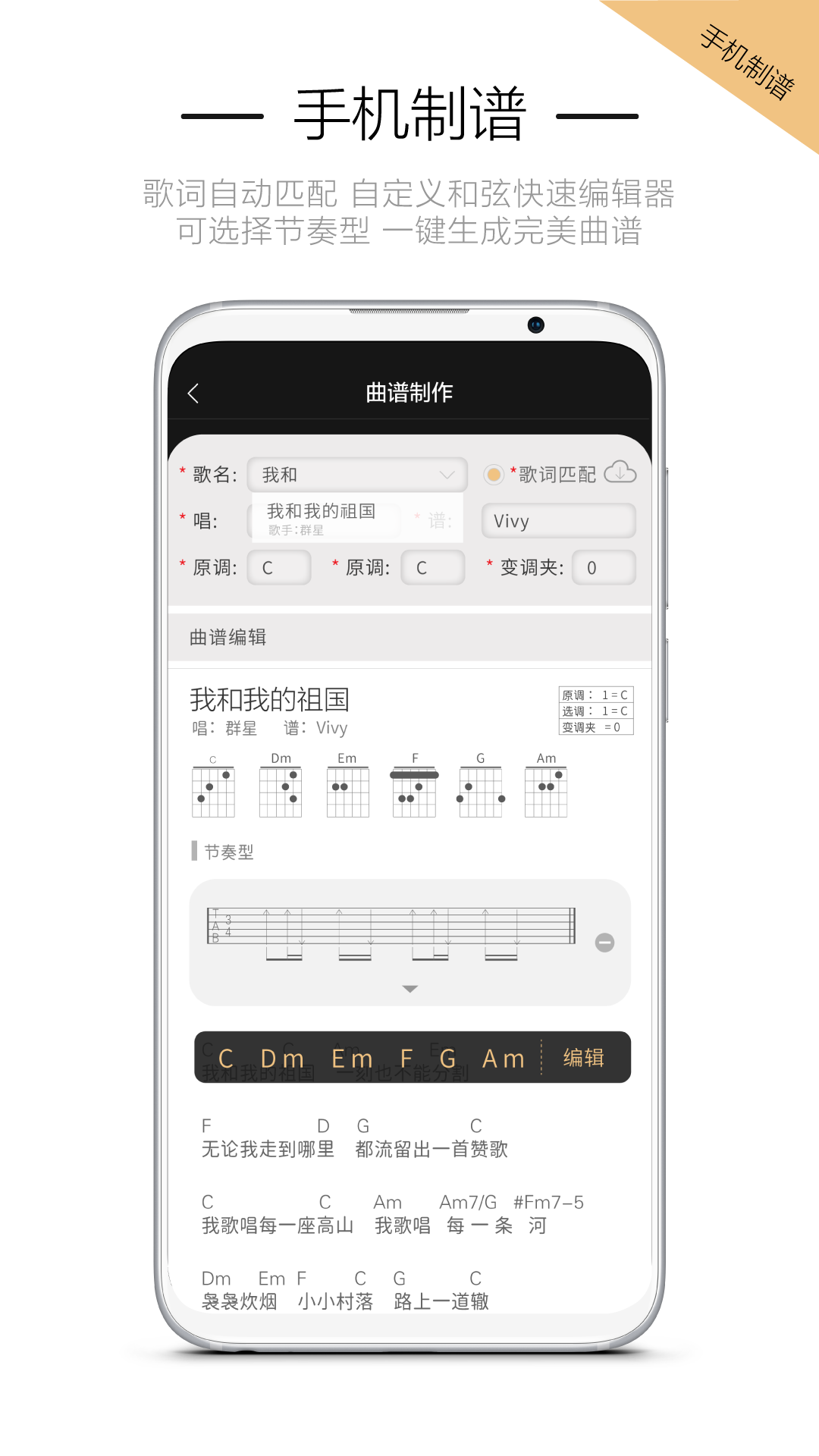 手机在线制谱,尤克里里谱、吉他谱(自动匹配和弦,自动匹配歌词,高效制谱)