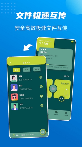 数据同步大师是一款传输速度非常快的文件同步工具,用户可以使用它来快速地将手机上的任意文件和数据进行转移,非常适合在换新手机的时候进行使用,让你不用担心老手机上的数据丢失,而且支持一键转移。另外平时的文件传输也是可以使用该软件的,极速妙传让你能够更加效率地发送和接收文件,当然传输的过程也是非常安全的。