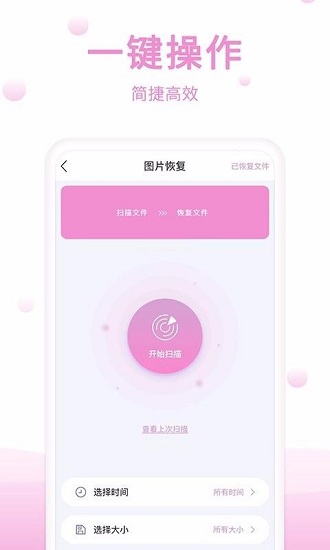 只要选择需要恢复的文件以后,可以通过app一键进行数据恢复;