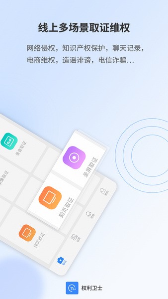 这款高度可信、法律认可的取证软件致力于为用户提供现场、互联网线上取证的全方位解决方案。通过权利卫士,用户可以轻松使用拍照取证、录像取证、录音取证、网页取证、录屏取证等功能,即时将发生的事实进行取证,并通过可信时间戳进行固化,生成不可否认和篡改的电子证据,从而有效保护其合法权益。该应用广泛适用于知识产权保护、消费者维权、债务纠纷、造谣诽谤、劳动仲裁、婚姻家庭纠纷等多种场景,用户只需简单的手机连接,即可便捷地进行线上取证。