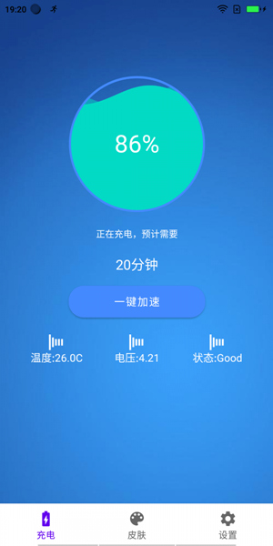极速充电大师是一款主打手机电池管理服务的软件,如果想要让手机电池的寿命更加长久的话,那么便可以通过这款软件来帮助我们初步减少对手机电池的损耗,其搭配了一键加速、一键省电、电池优化等功能,同时在充电时,用户还能实时查看充电完成时间、当前温度、电压等信息,以确保手机安全,让你的手机续航时间更长久,满足你的使用需求!