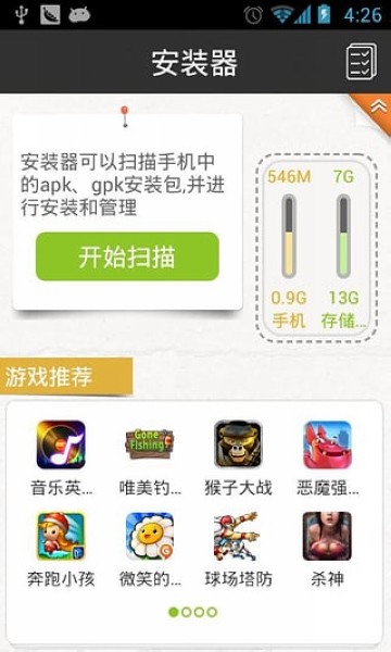 2、针对【拇指玩】上面的大型游戏GPK文件而开发的新功能,完美支持GPK文件的安装,简单,方便的安装方式让你尽情享受大型游戏带来的欢乐;