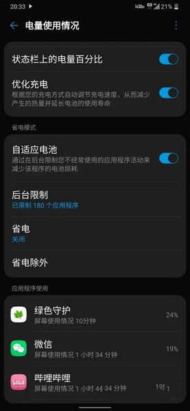 借助绿色守护自带的「应用排查顾问」进行分析已经足够,我们也可以依据系统的电量消耗监测功能或者一些第三方分析软件,比如说 BetterBatteryStats 的报告来找出对续航有影响的应用,或者手动添加自己不常用的应用。比如说不需要常驻后台的酒店、旅行、外卖类的客户端应用,而即时聊天应用等对时效性要求较高的应用则可以允许其在后台运行。