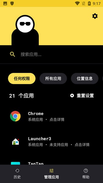 ·以关闭应用程序的权限也可以将其打开。但是软件自身除了设置应用程序外不需要任何权限,它无法查看应用程序内的信息。