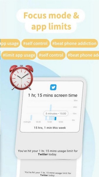 应用使用限额:暂时屏蔽任何你过渡使用的应用,帮你保持专注。