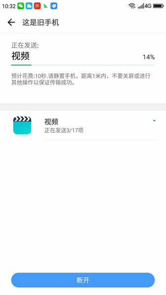 还有就是它支持的数据类型真的很多,不只是基本信息,连微信图片、WIFI密码这些细节都能传过去,这点真的很实用。而且整个过程都不用联网,用Wi-direct技术直接手机对手机传输,速度快又省流量,不过转移的时候要断开WiFi哦,这个小细节需要注意一下。