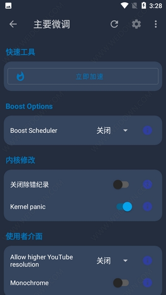 这款软件还有一些很有意思的特色功能,比如通过LMK和VM内核优化减少缓滞,提升SD卡读写速度,还有简单的终端模拟器菜单。它还可以通过zipalign技术减少内存消耗,提高显示效果,而且源码也很简洁明了。这些功能不仅能延长手机待机时间,还能通过Seeder功能进一步优化内核性能,并且自带广告拦截功能。