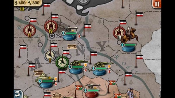 2、第一天,在华沙和波兰西南角的一级工厂里造3门大炮(华沙1门,西南角2门),先用西南角的大炮轰一下旁边西里西亚的德国步兵(要打到他掉一大半血,否则重来),华沙的大炮轰波兰西北角的德国机枪兵