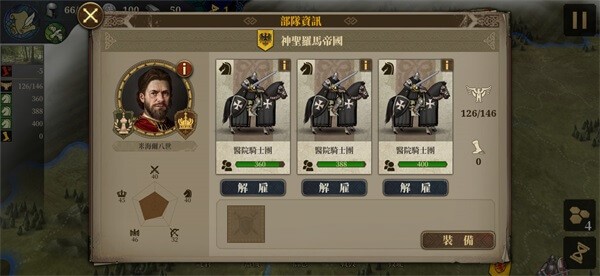 在兵种克制方面,近战步兵和防御步兵各有优劣,骑兵冲锋虽然伤害高但血量低,容易暴毙。弓骑兵则是游戏中非常强力的存在,不仅攻击和行动力高,还能克制多种兵种。条顿骑士、圣殿骑士等三大骑士团更是属性爆表,适合土豪玩家。